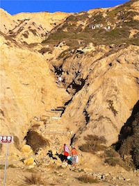 The unofficial gay beach of San Diego, Black’s Beach is located near the community of La Jolla, at the southern tip of the Torrey Pines State Beach. It’s a huge beach that stretches several miles under wind and water carved sandstone cliffs. Very beautiful, and quite a hike down the 300 foot (100 meter) cliffs – and back up!